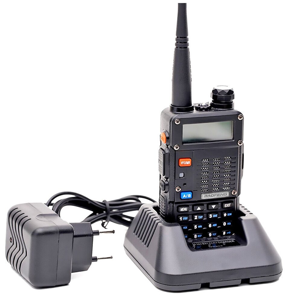 Type: walkie-talkie, number of channels: 128 pcs., transmitter power: 5 W, frequency range: GMRS, LPD, PMR, UHF, VHF, frequency range, min.: 136 MHz, range: 12 km, features: CTCSS, DCS , DTMF, FM radio, key lock, voice