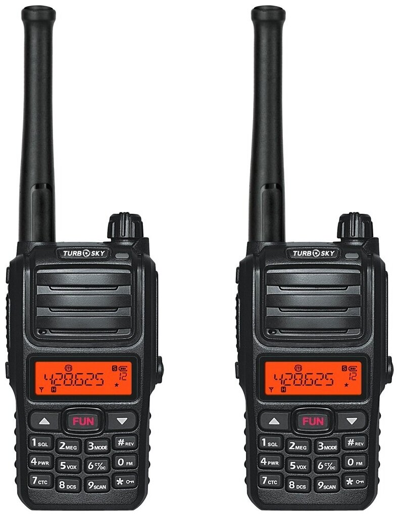Type: walkie talkie, number of channels: 199 pcs., transmitter power: 5 W, frequency range: UHF, frequency range, min.: 400 MHz, features: CTCSS, DCS, DTMF, FM radio, keypad lock, voice activation via headset VOX, sound
