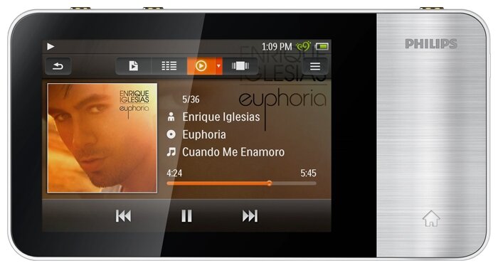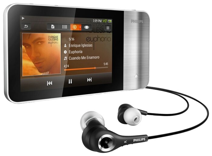 Options and kit: FM tuner, voice recorder, speaker, touchscreen, screen, maximum memory card capacity: 32 GB, maximum operating time: 24 hours, support for audio formats: AAC, APE, FLAC, OGG, WAV, WMA, weight: 104 g