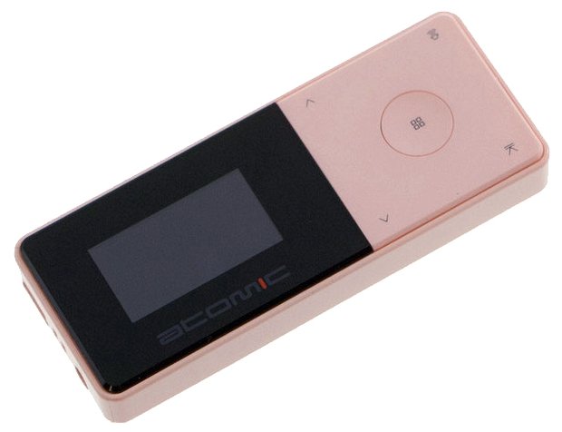 Options and kit: FM tuner, voice recorder, screen, maximum operating time: 18 hours, support for audio formats: APE, FLAC, WAV, WMA, weight: 22 g