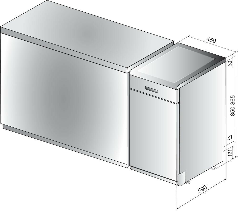 Installation type: freestanding, type: narrow, width: 45 cm, height: 85 cm, depth: 60 cm, safety: anti-leakage, programs: fast, intensive, standard, capacity: 8 sets, features: adjustable according to �
