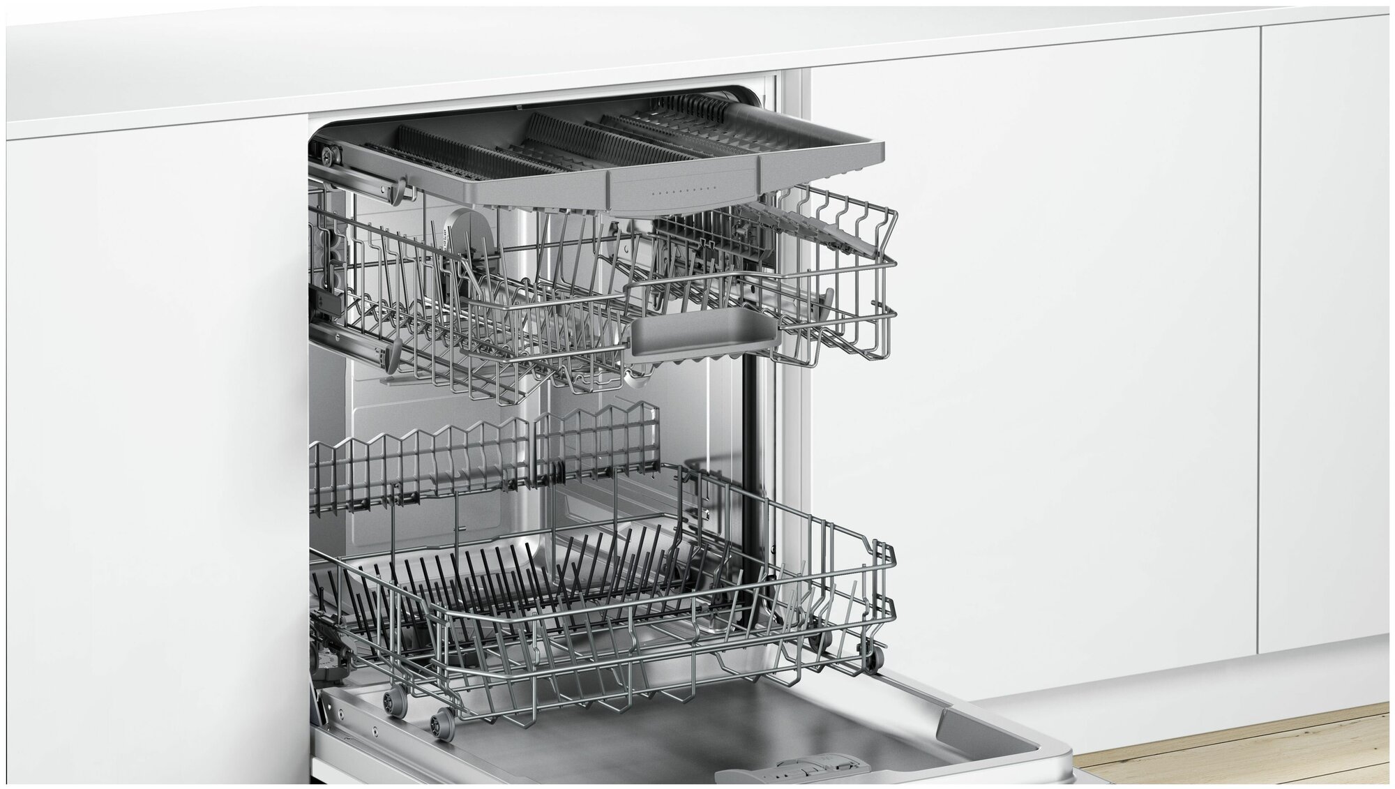 Automatic water hardness setting, stainless steel inner surface, display, 3 in 1 products, height-adjustable basket for dishes, water purity sensor, delay timer