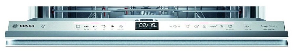 Automatic setting of water hardness, stainless steel inner surface, display, use of 3 in 1 products, handleless opening, chamber lighting, height-adjustable basket for dishes, clean sensor