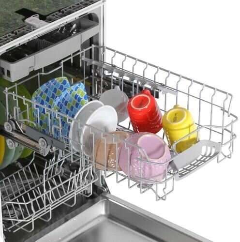 Design features: Automatic setting of water hardness, stainless steel inner surface, 3 in 1 use, instantaneous water heater, height-adjustable basket for dishes, delay timer