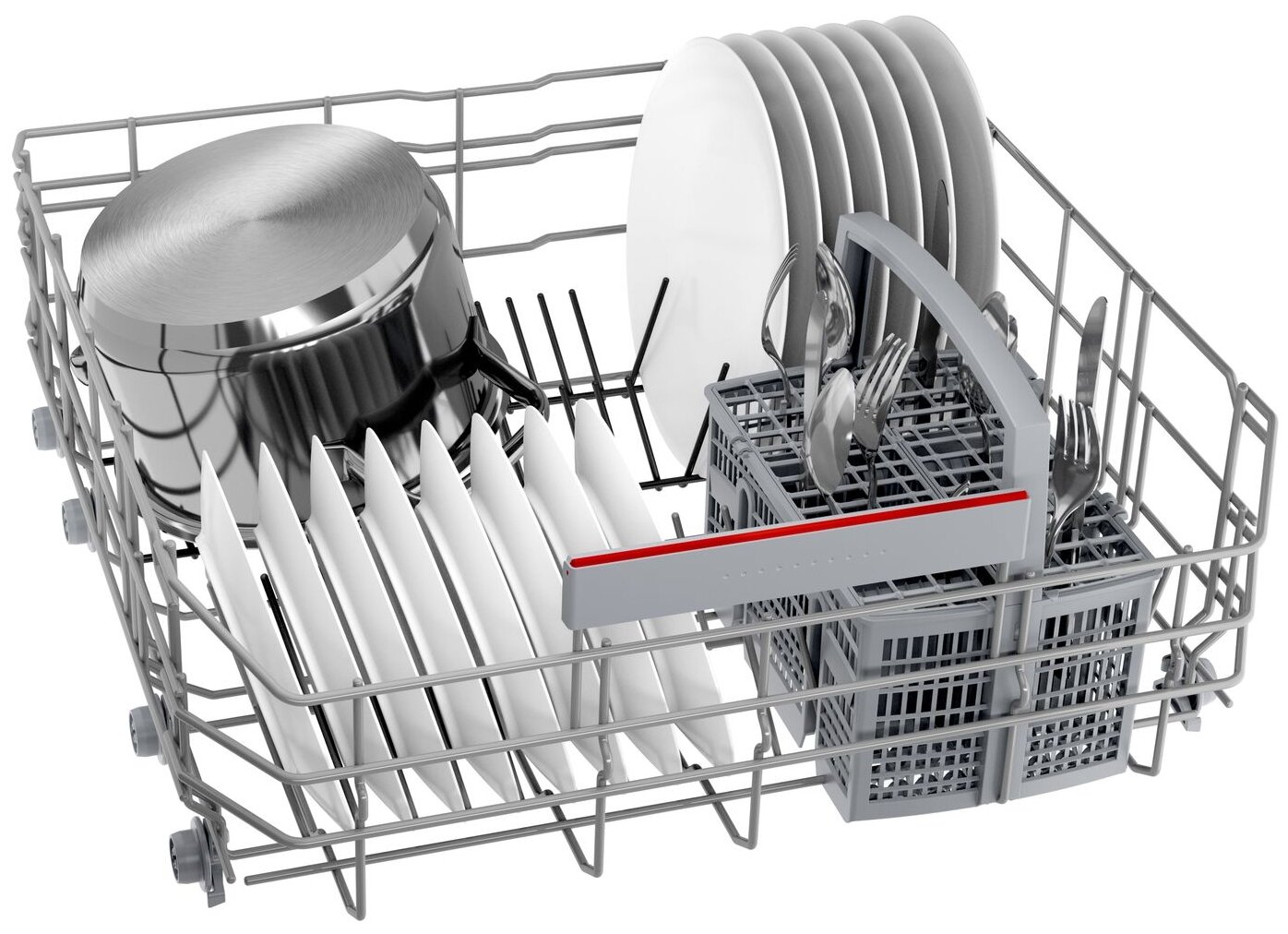 Extra Rinse, Pre-Rinse, Silence on demand via the Home Connect app, Extra Dry; network cable length: 175 cm; outlet hose length: 190 cm; three-component self-cleaning filter; collapsible plate rails in the bottom basket