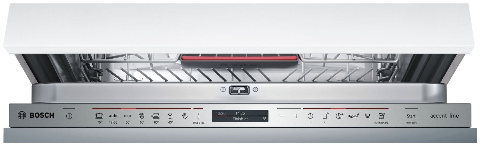 Stainless steel interior, display, 3-in-1 product usage, chamber lighting, height-adjustable basket for dishes, water purity sensor, delay timer