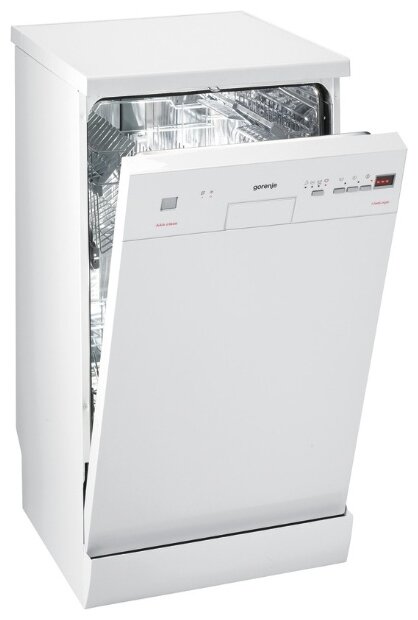 Installation type: free-standing, type: narrow, width: 45 cm, height: 85 cm, depth: 55 cm, safety: leakage protection, operation indication: sound, programs: automatic, fast, delicate, intensive, preliminary