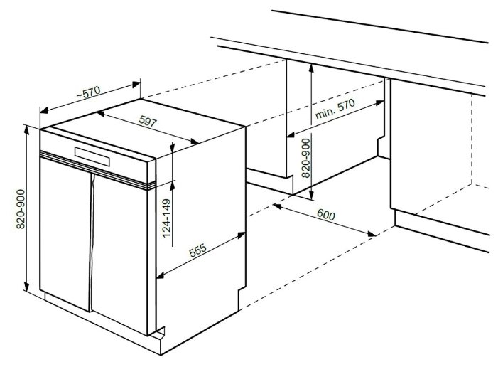 Installation type: partially built-in, type: full-height, width: 60 cm, height: 82 cm, depth: 56 cm, safety: anti-leakage, programs: fast, intensive, pre-rinse/soak, floor mode