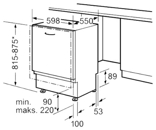 Installation type: fully built-in, type: full-height, width: 59.50 cm, height: 81.50 cm, depth: 55 cm, safety: anti-leakage, programs: automatic, fast, intensive, economy, drying type: condensate