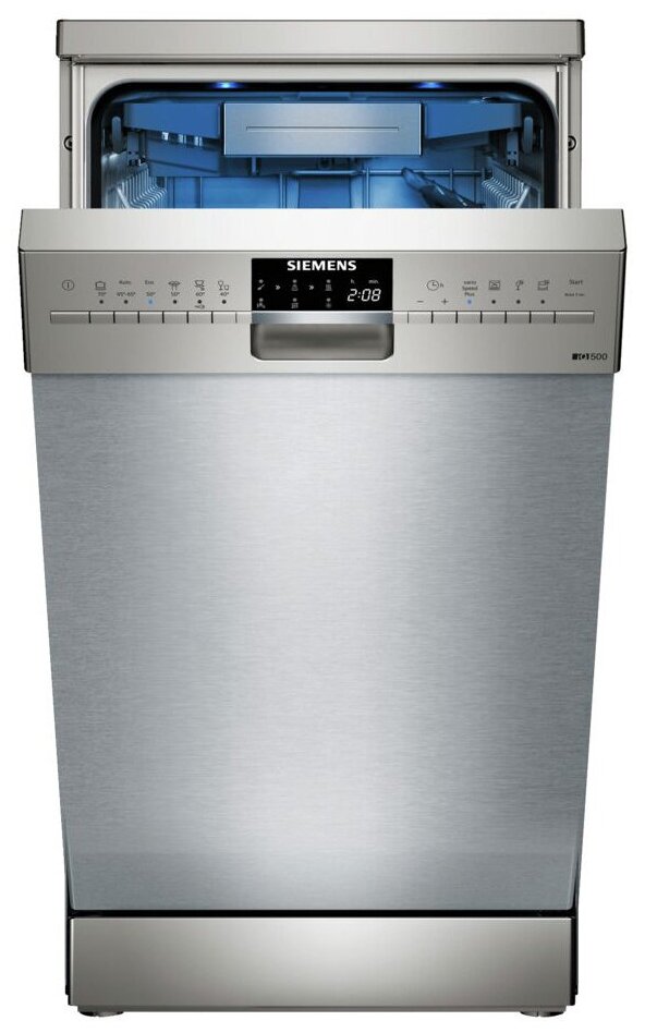 Stainless steel interior, display, anti-fingerprint treatment, height-adjustable basket for dishes, water purity sensor, delay timer