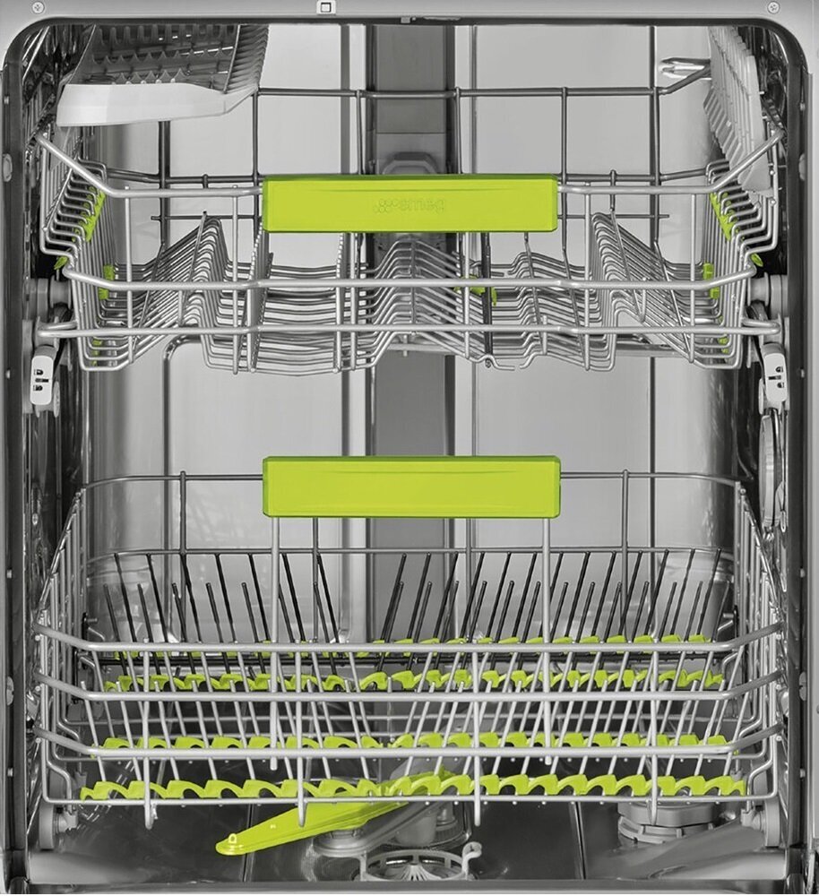 Automatic water hardness setting, stainless steel interior, display, height-adjustable basket for dishes, delay timer