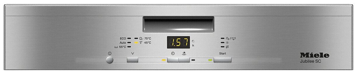 Design features: Stainless steel interior, display, height-adjustable basket for dishes, water purity sensor, delay timer