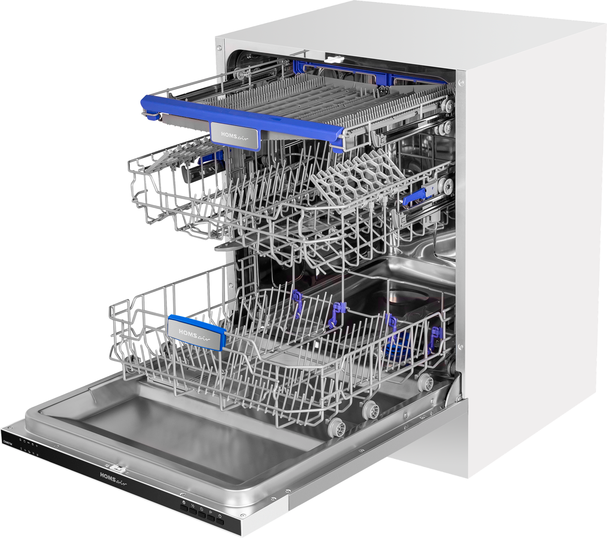 Turbo dryer. Indication of the end of a sink "Beam on a floor". Leak protection. Removable cutlery basket. Possibility of using detergents "3in1". Delay start from 1 to 24 hours and an interval of one hour.