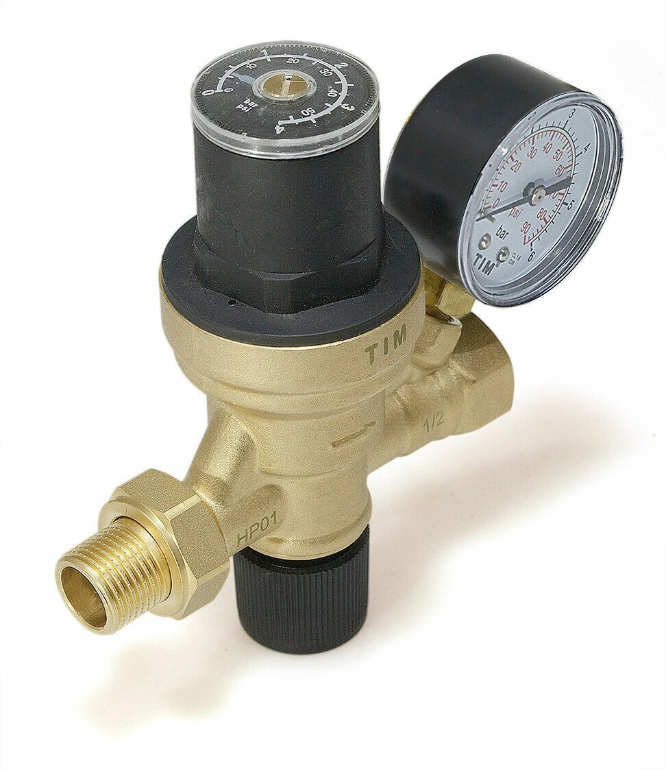 Body material: brass, type of connection: socket female/male thread, nominal pressure: PN 16, inlet diameter: DN 15 1/2", outlet diameter: DN 15 1/2", valve adjustment, options: pressure gauge