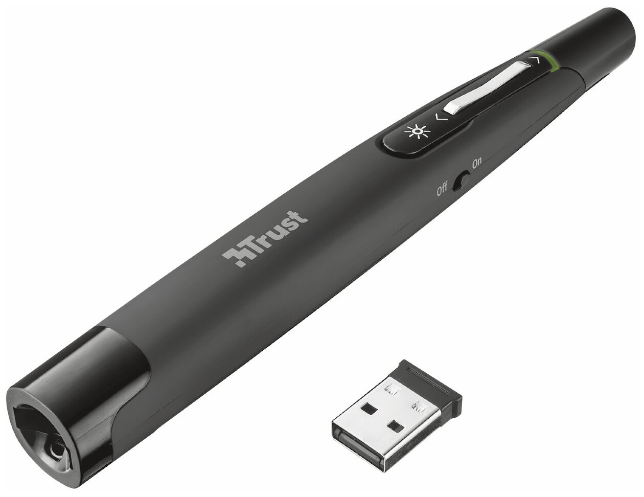 Control type: buttons, connection interface: USB, laser pointer, range: 15 m, number of buttons: 5 pcs., functionality: start playback, stop playback, switch slides, features: indicator