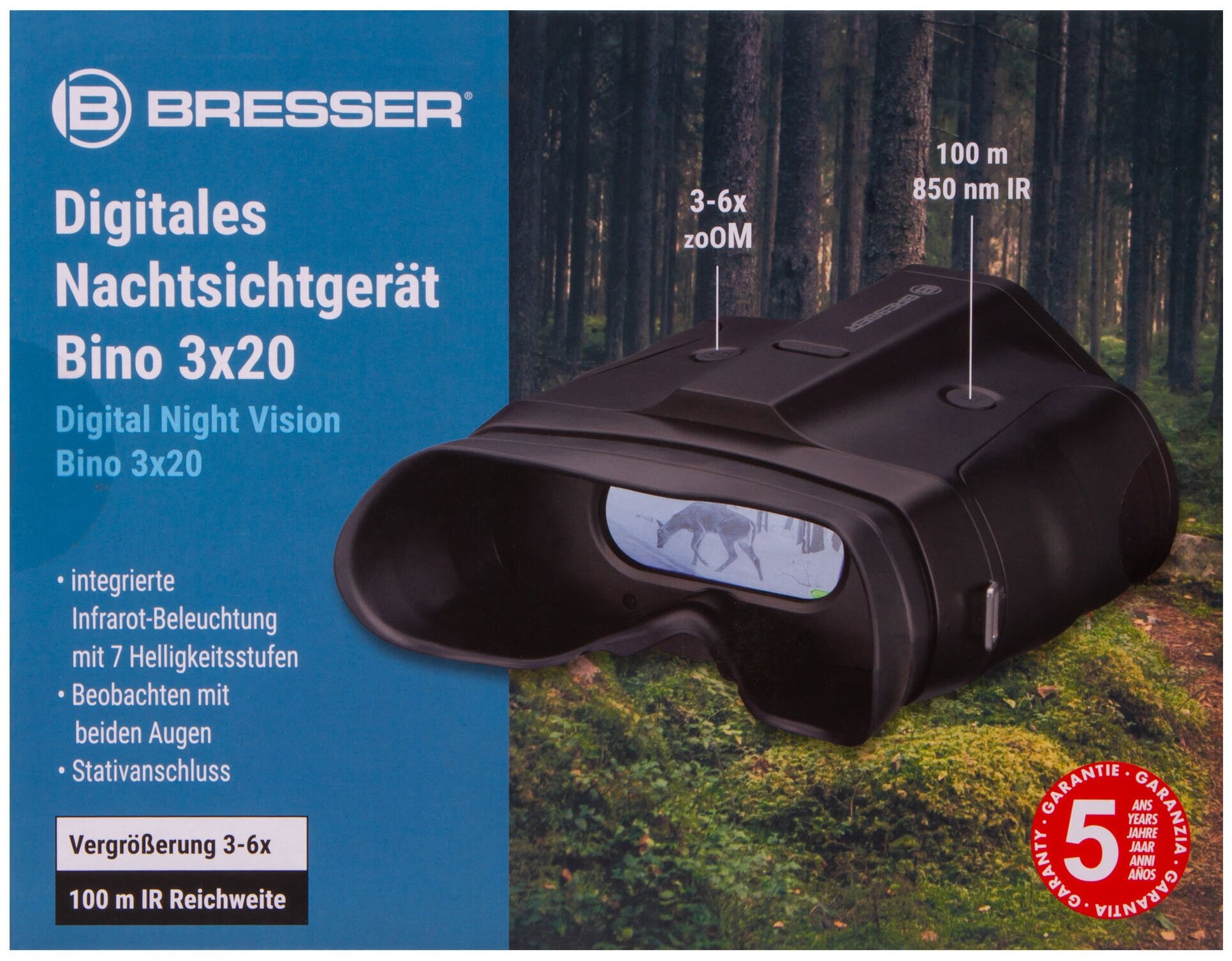 Optical zoom: 3 x, lens diameter: 20 mm, IR LED, detection range: 100 m