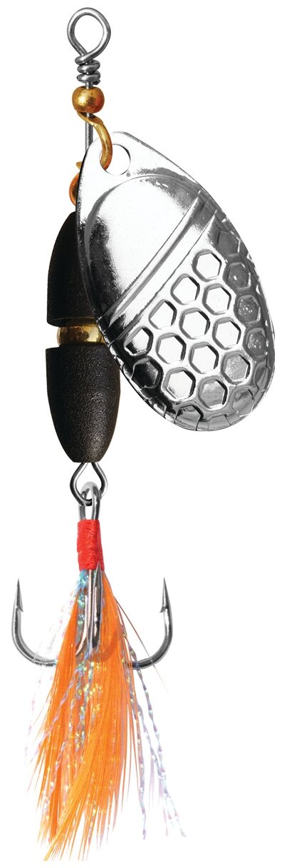 The color of the petal of the lure is silver, the color of the body of the lure is black, the lure is equipped with a tee No. 4 with a "fly"