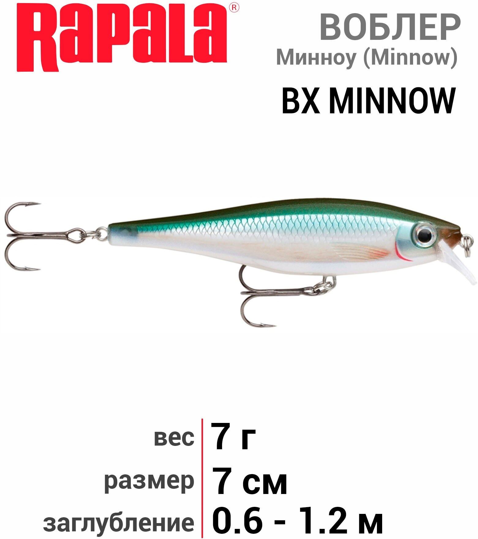 Wobbler Rapala BX Minnow BXM07-BBH 7 g 70 mm