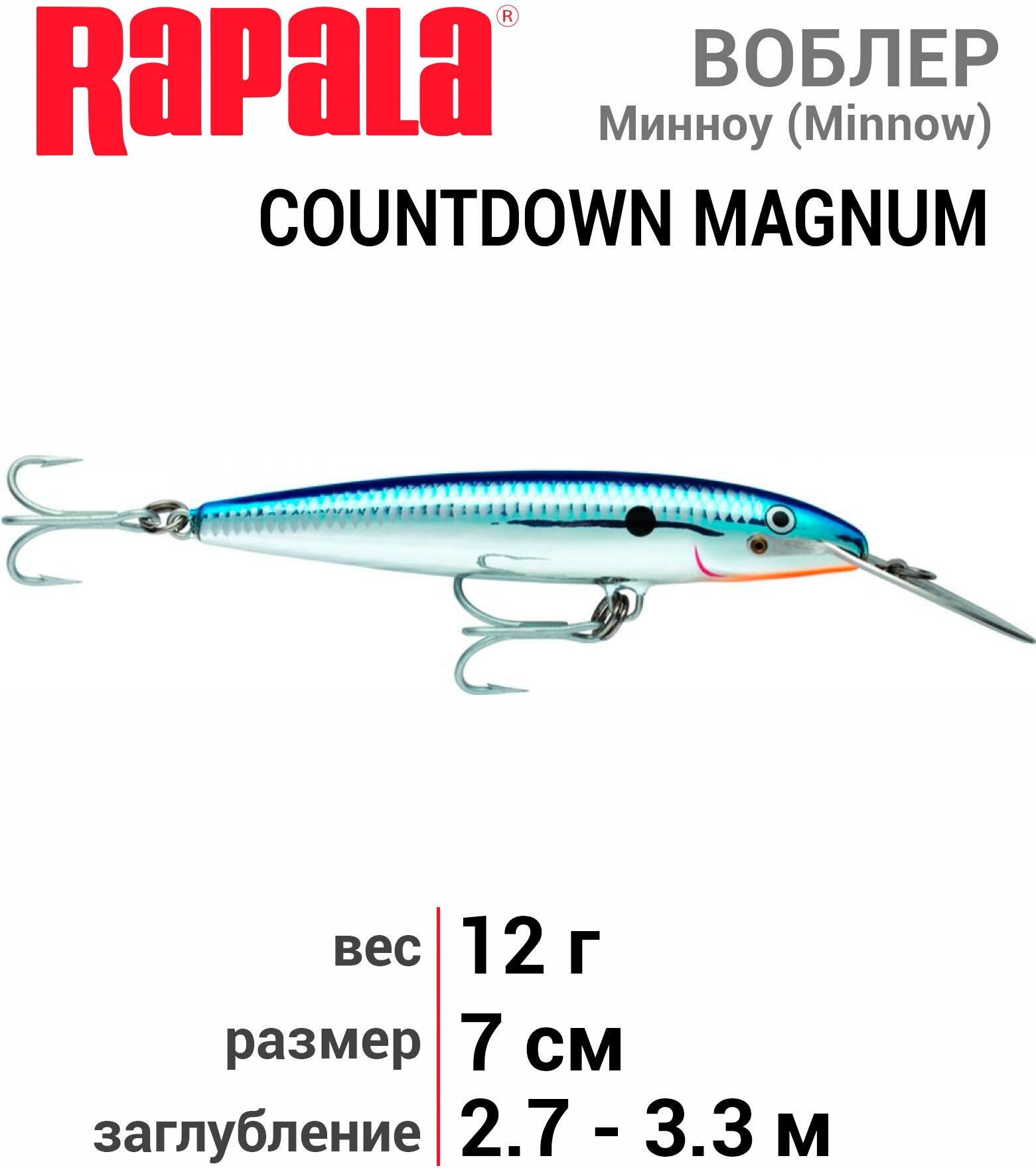 Wobbler Rapala Countdown Magnum CDMAG07-SB 12 g 70 mm