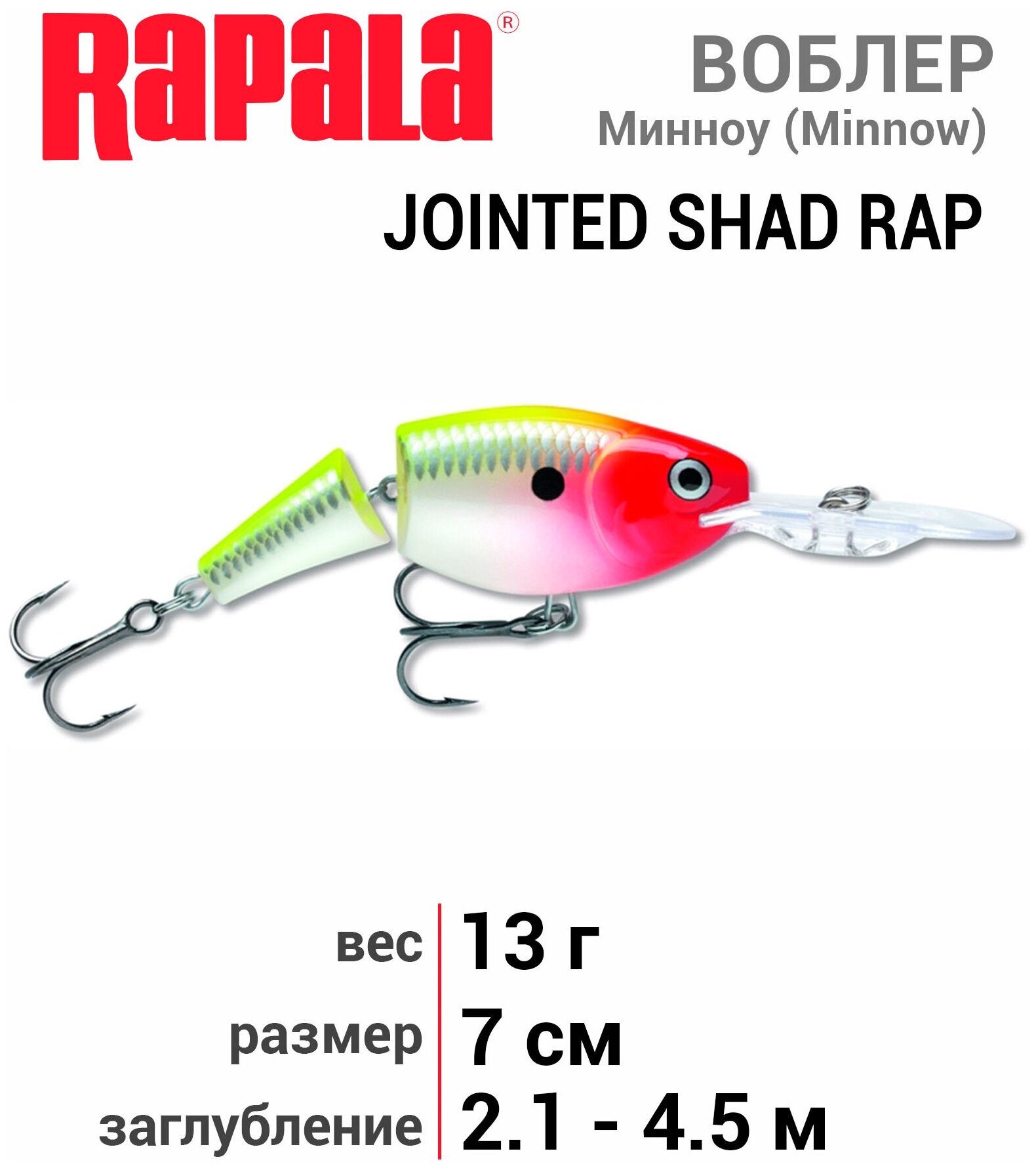 Wobbler Rapala Jointed Shad Rap JSR07-CLN 13 g 70 mm