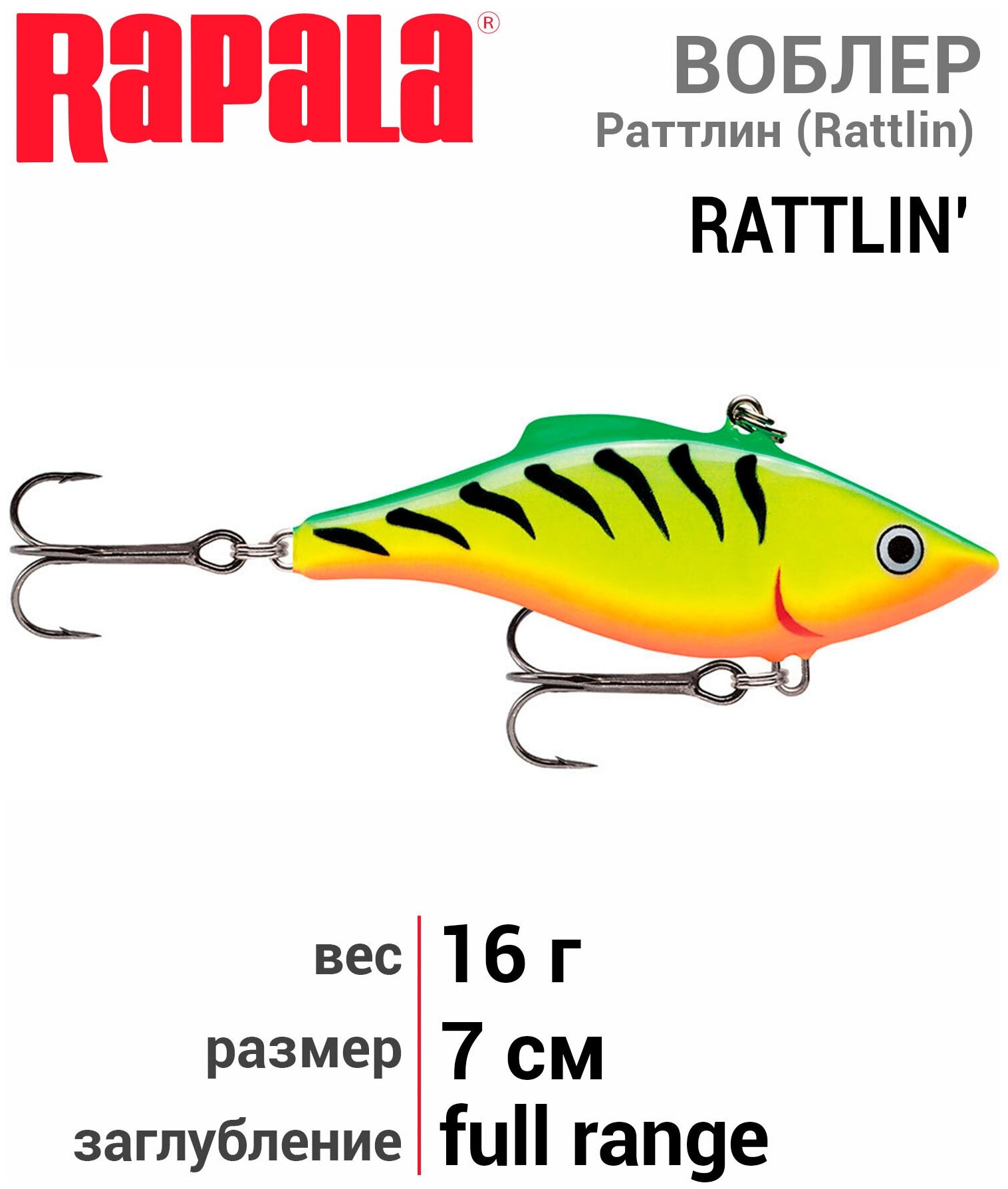 Wobbler Rapala Rattlin' RNR07-FT 16 g 70 mm