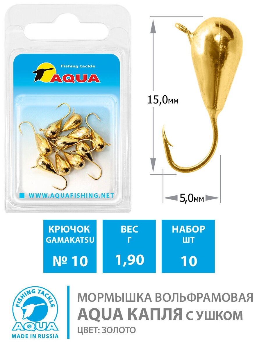 Mormyshka tungsten AQUA Drop with an eye 10 pieces in a package d5,0 with an eye, silver