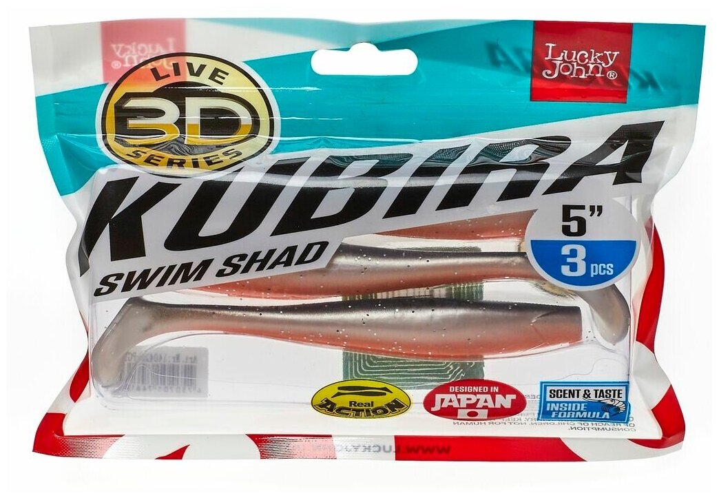 Lure set rubber Lucky John vibrotail 3D Series Kubira Swim Shad 140420-PG18 3 pcs.