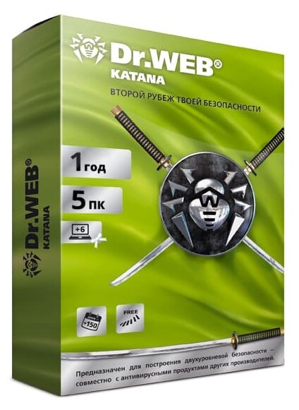 Description: Program type: antivirus/network security, program name: Dr.Web Katana, license term: 12 months, 24 months, 36 months, OS supported: Windows, OS bit depth: 32/64, license type: for personal use