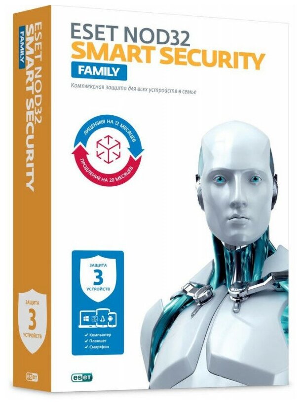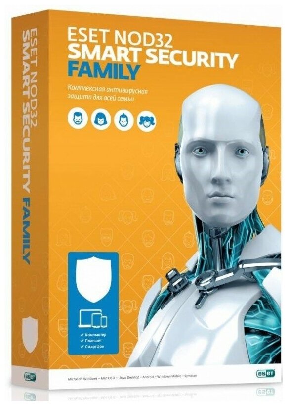 Software type: antivirus/network security, software name: ESET NOD32 Smart Security Family, license term: 12 months, 24 months, Supported OS: Android, Linux, Mac OS, Windows, OS bitness: 32/64, license type: personal use