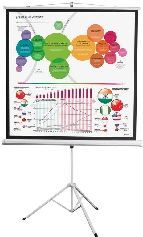 Installation type: mobile, floor standing, tripod, screen type: roll-up, working area height: 172 cm, working area width: 172 cm, metric diagonal: 243 cm, inch diagonal: 96 ", aspect ratio: 1:1, drive: manual,