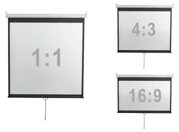 Installation type: wall-ceiling, wall-mounted, screen type: roll-up, working area height: 300 cm, working area width: 168 cm, diagonal inch: 135 ", aspect ratio: 16:9, drive: manual, projection type: straight, color e