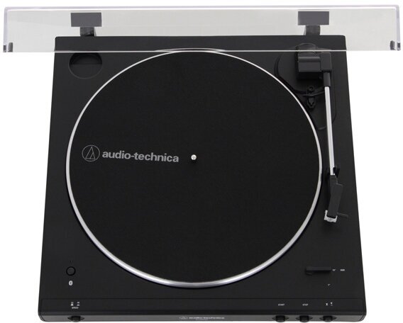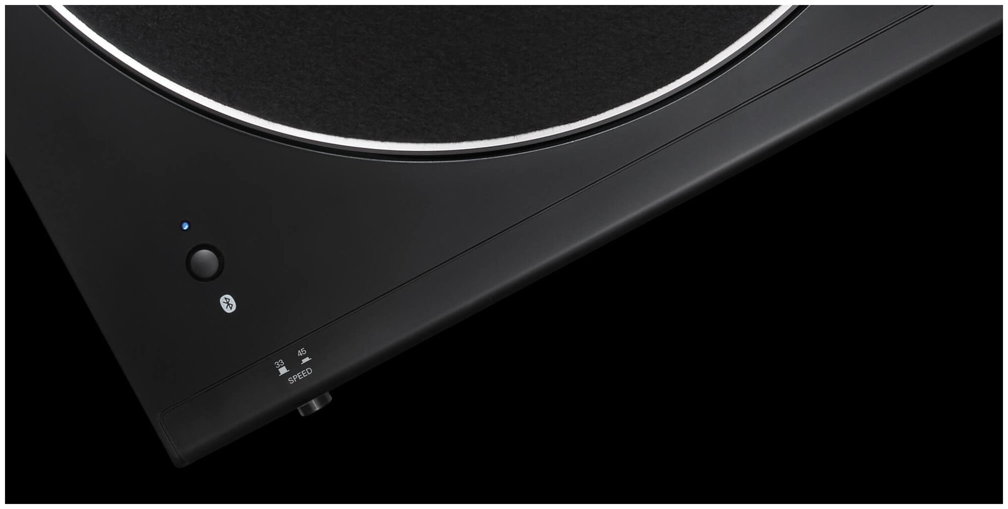Belt drive speed 33 and 45 rpm, electronic shifting, cartridge included, cover included, built-in phono stage, electronic speed shifting, automated