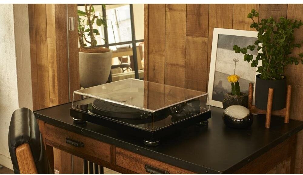 33 and 45 rpm belt drive, manual shifting, cartridge included, cover included, built-in phono stage, no manual shifting