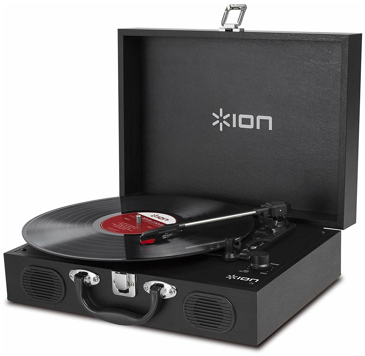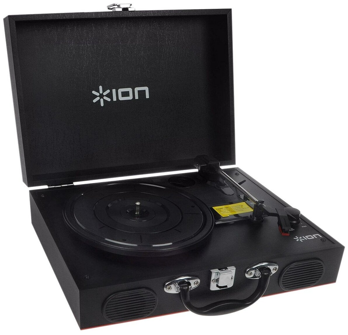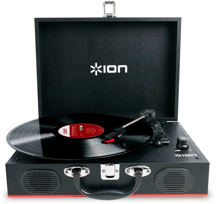 Belt drive, speeds 33, 45 and 78 rpm, electronic switching, cartridge included, cover included, built-in phono stage, electronic speed switching, autostop, built-in acoustics, battery powered