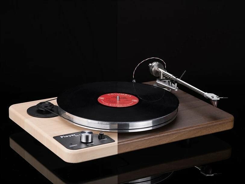 33 and 45 rpm belt drive, manual shift, cartridge included, built-in phono stage, manual shift