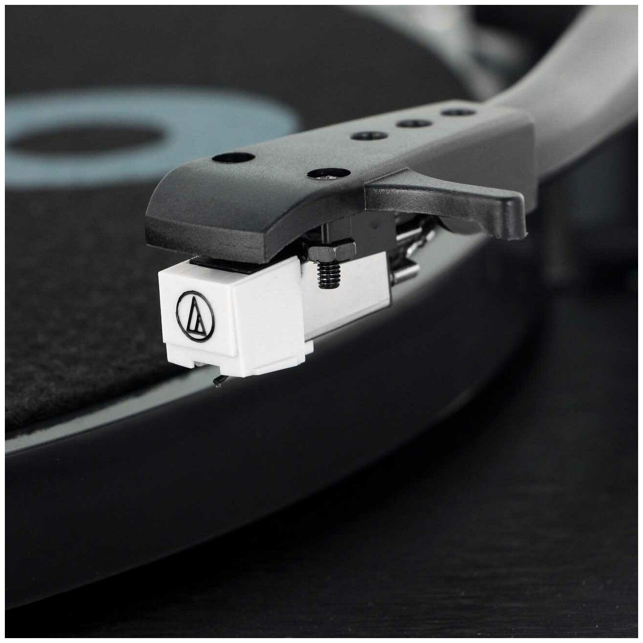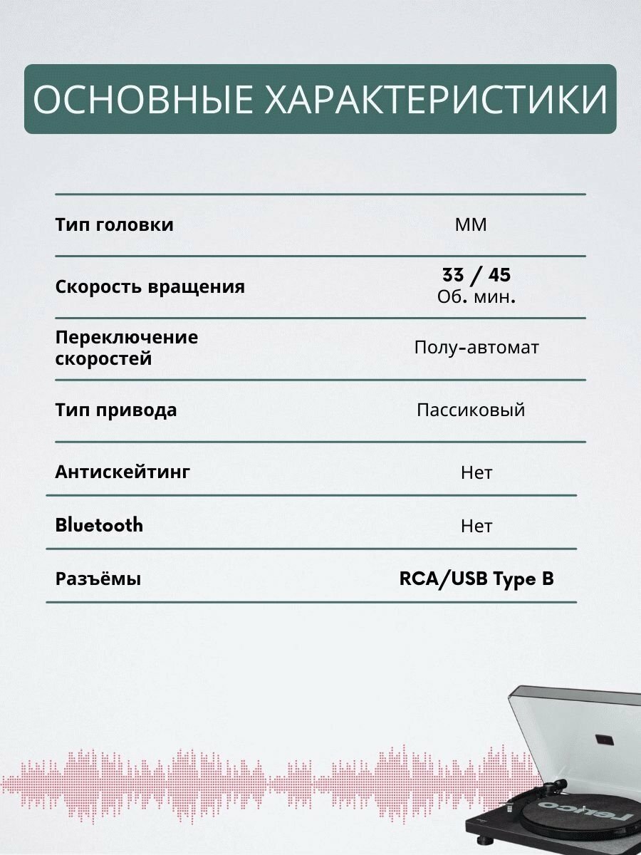 33 and 45 rpm belt drive, electronic shifting, cartridge included, cover included, built-in phono stage, electronic speed shifting, autostop, computer connection