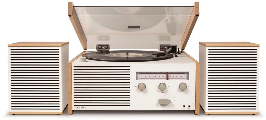 Belt drive speed 33 and 45 rpm, cartridge included, cover included, built-in phono stage, built-in acoustics