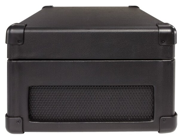 Belt drive, speeds 33, 45 and 78 rpm, manual switching, cartridge included, cover included, built-in phono stage, no manual speed switching, built-in acoustics, battery powered