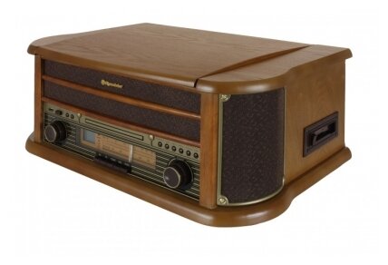 Belt drive, speeds 33, 45 and 78 rpm, electronic switching, cartridge included, cover included, built-in phono stage, electronic speed switching, autostop, built-in acoustics