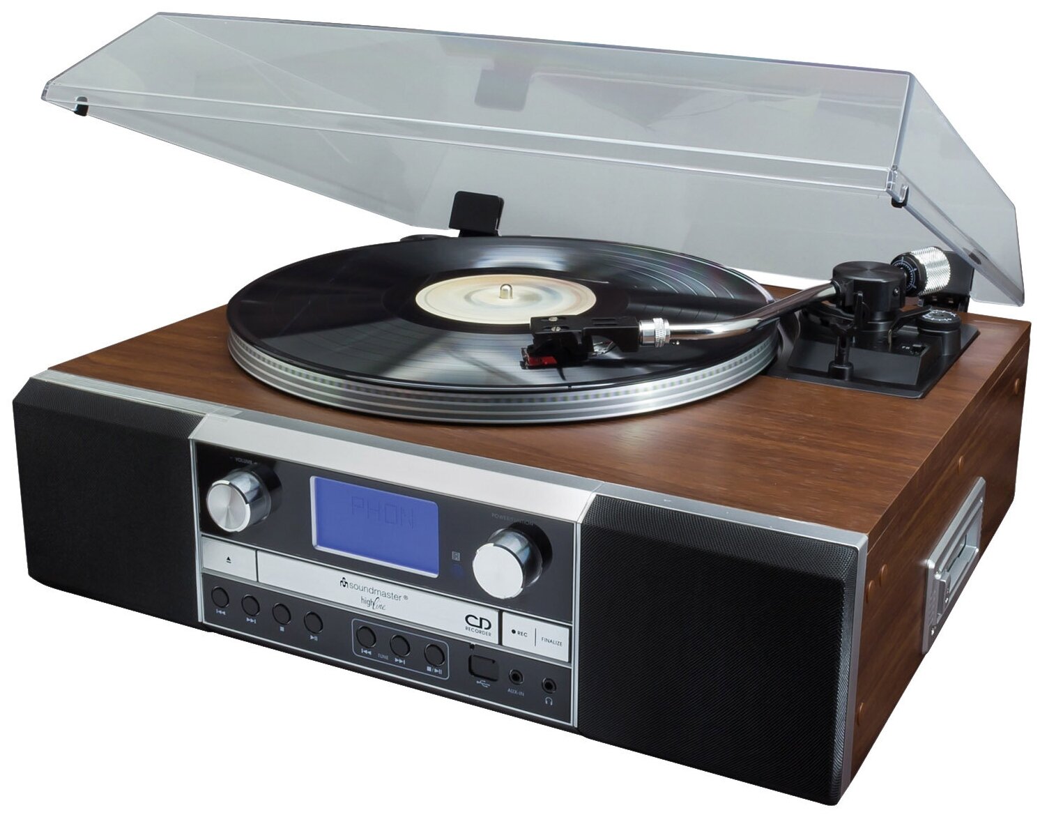 CD recorder; cassette player; FM radio; USB port; MP3 support; AUX input