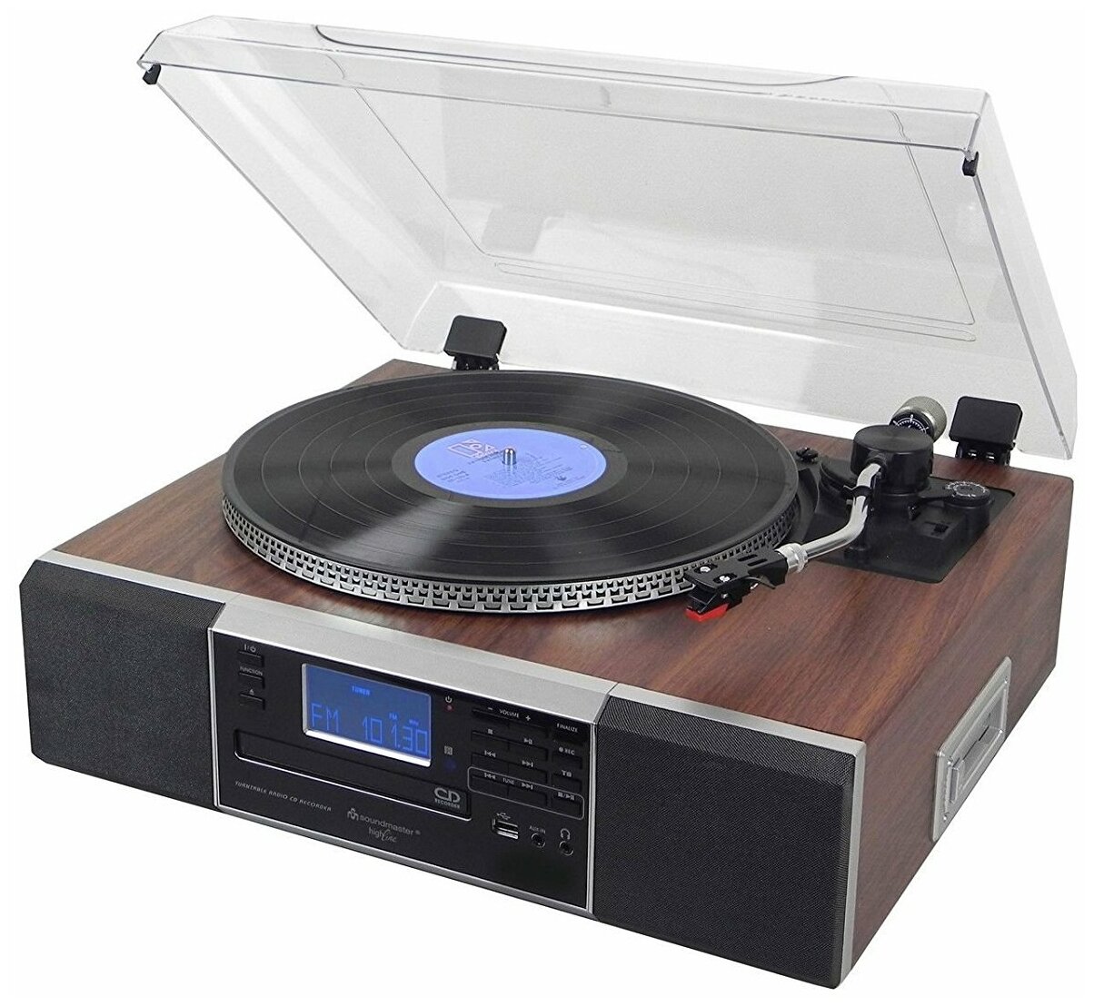 Belt drive speed 33 and 45 rpm, cartridge included, built-in phono stage, built-in acoustics