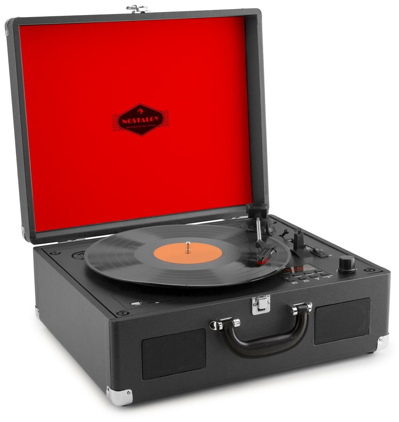 Belt drive speed 33 and 45 rpm, cartridge included, cover included, built-in phono stage, built-in acoustics
