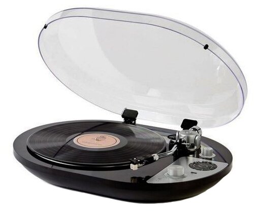 33 and 45 rpm belt drive, manual shift, cartridge included, cap included, built-in phono stage, manual shift