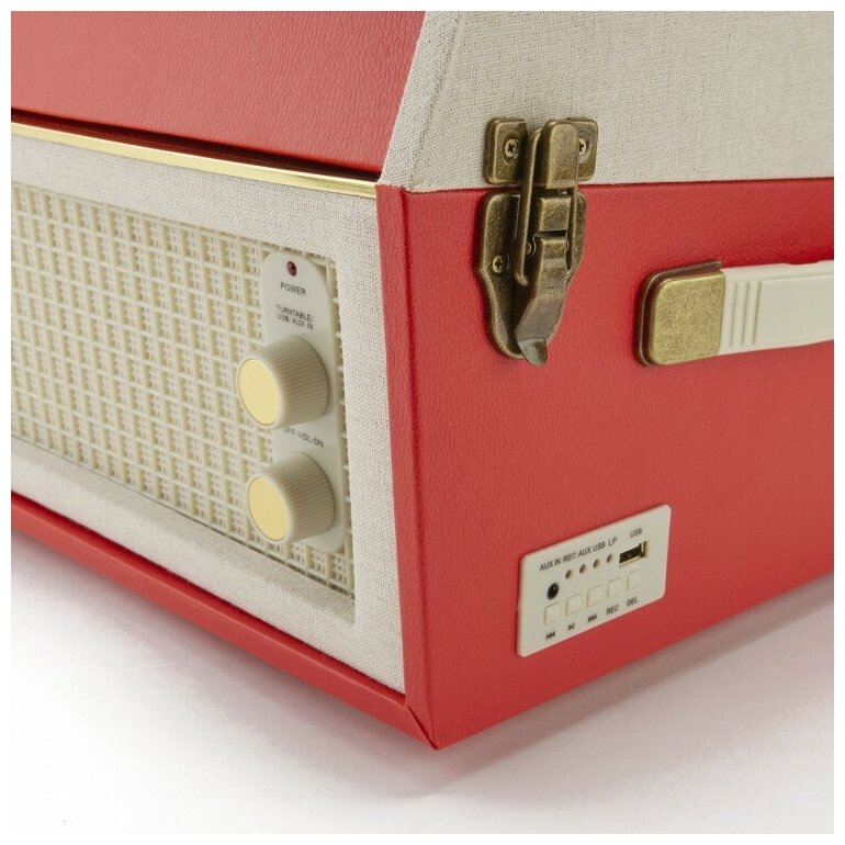 Belt drive, speeds 33, 45 and 78 rpm, electronic switching, cartridge included, cover included, built-in phono stage, electronic speed switching, autostop, built-in acoustics