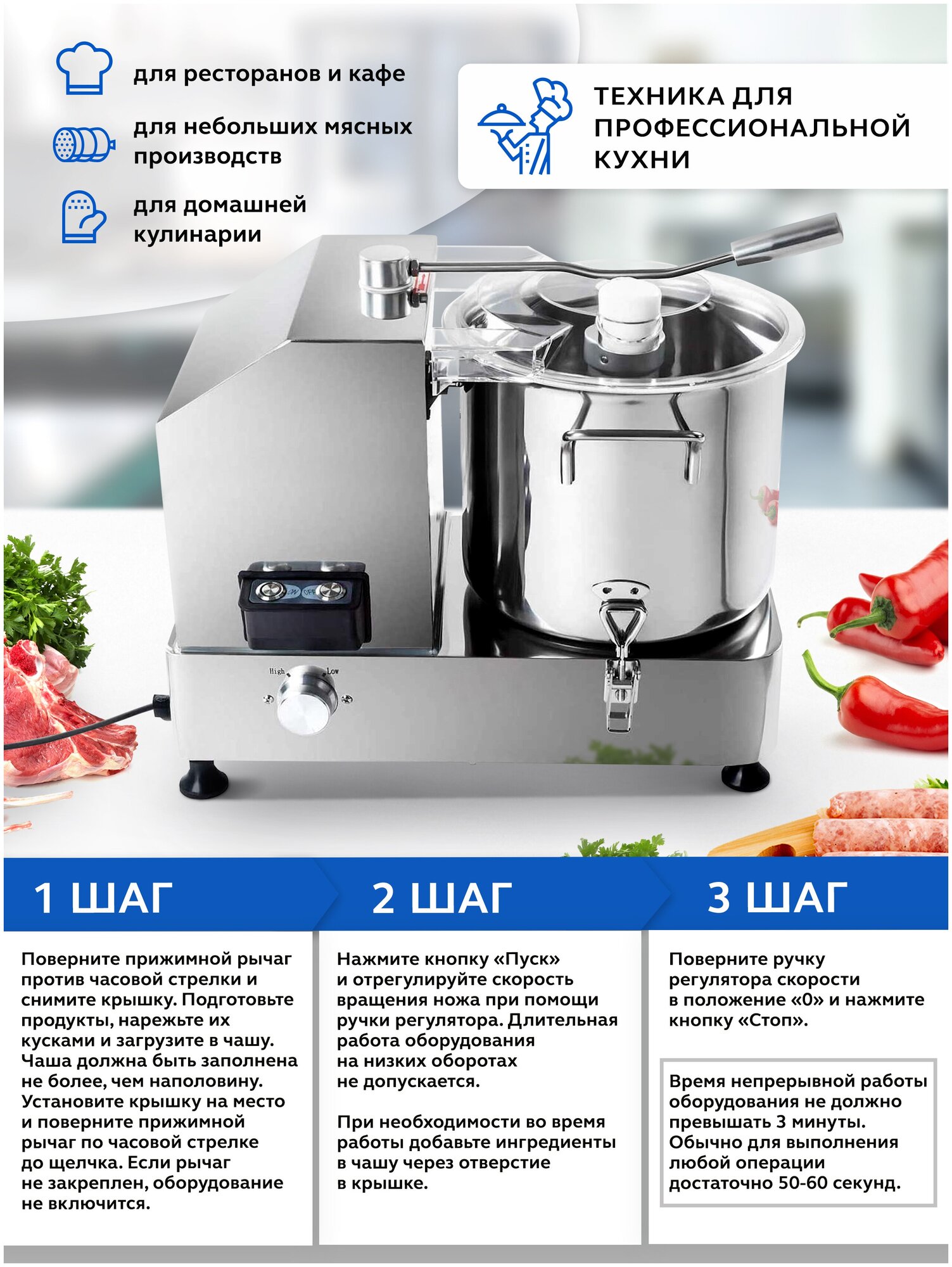 Type: cutter, body material: stainless steel steel, power: 0.95 kW, installation: tabletop, maximum rotation speed: 2800 rpm, loading compartment volume: 9 l