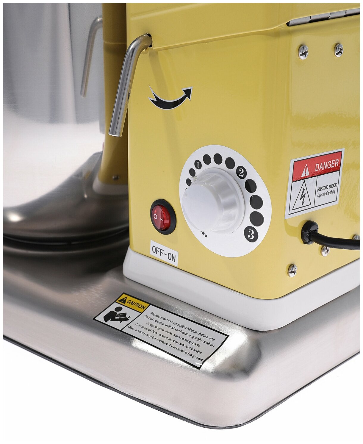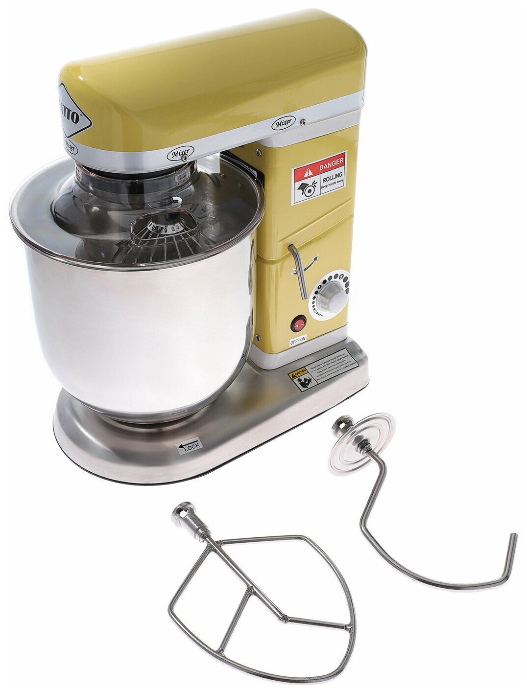 Type: planetary mixer, control type: mechanical, bowl/glass volume: 10 l, maximum rotation speed: 320 rpm, speed variator, maximum load: 1.50 kg, power: 800 W, height: 44 cm, width: 31 cm, depth: 4