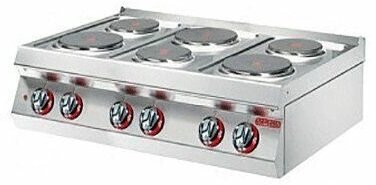 Type: electric, type of burners: electric, number of burners: 6, shape of burners: round, worktop material: cast iron, oven type: no, setting: table top, maximum burner temperature: 340