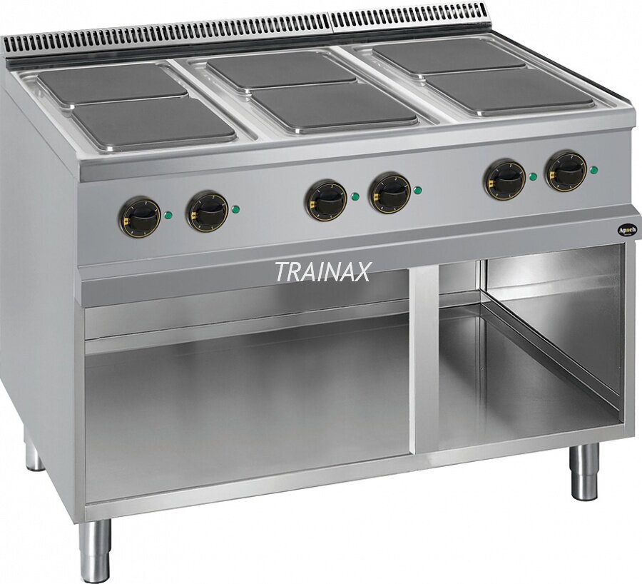 Type: electric, number of burners: 6, shape of burners: rectangular, oven type: no, installation: floor standing, maximum burner temperature: 290 °C, control type: rotary, power: 15.60 kW, features: