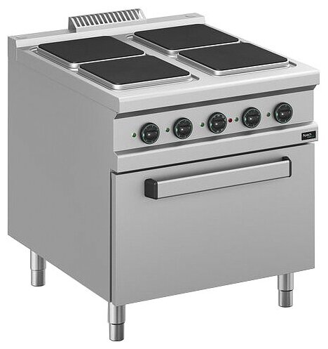 Type: electric, number of burners: 4, shape of burners: rectangular, worktop material: cast iron, oven type: electric, installation: floor standing, oven volume: 113.40 l, burner area: 0.19 m²