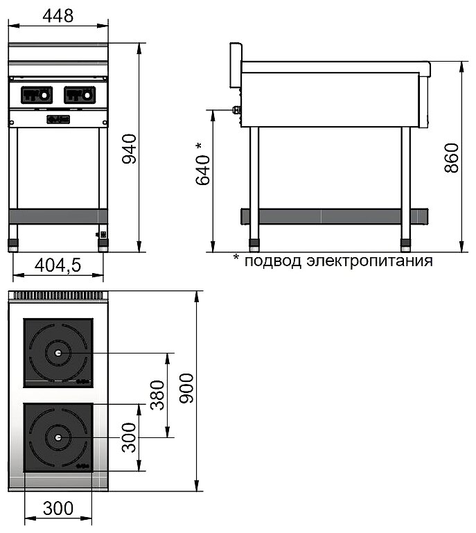 Type: electric, type of burners: induction, number of burners: 2, shape of burners: rectangular, work surface material: glass-ceramic, oven type: no, installation: floor, burners area: 0.18 m²,